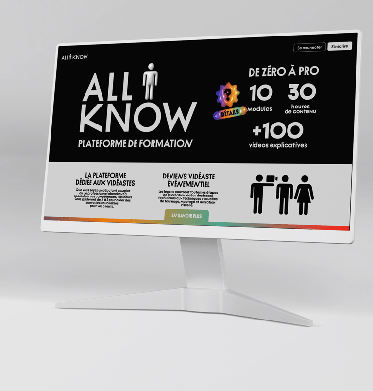 The ALLIKNOW project is a mobile and web learning platform for aspiring videographers. As its name suggests, it shares everything Antoine knows – a professional videographer renowned for his kindness, enthusiasm, and trusted relationships with his clients.