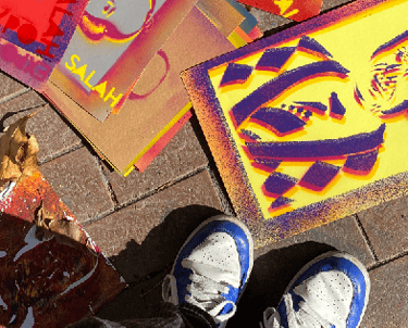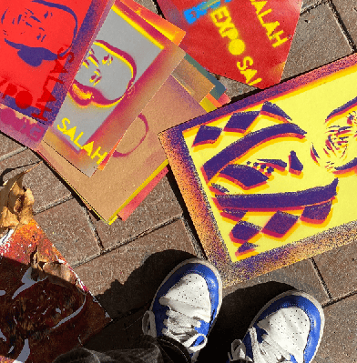 Avec mon binôme, on a travaillé sur des portraits-pochoirs découpés à la laser-découpe puis bombés à la main.