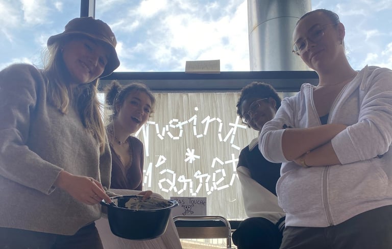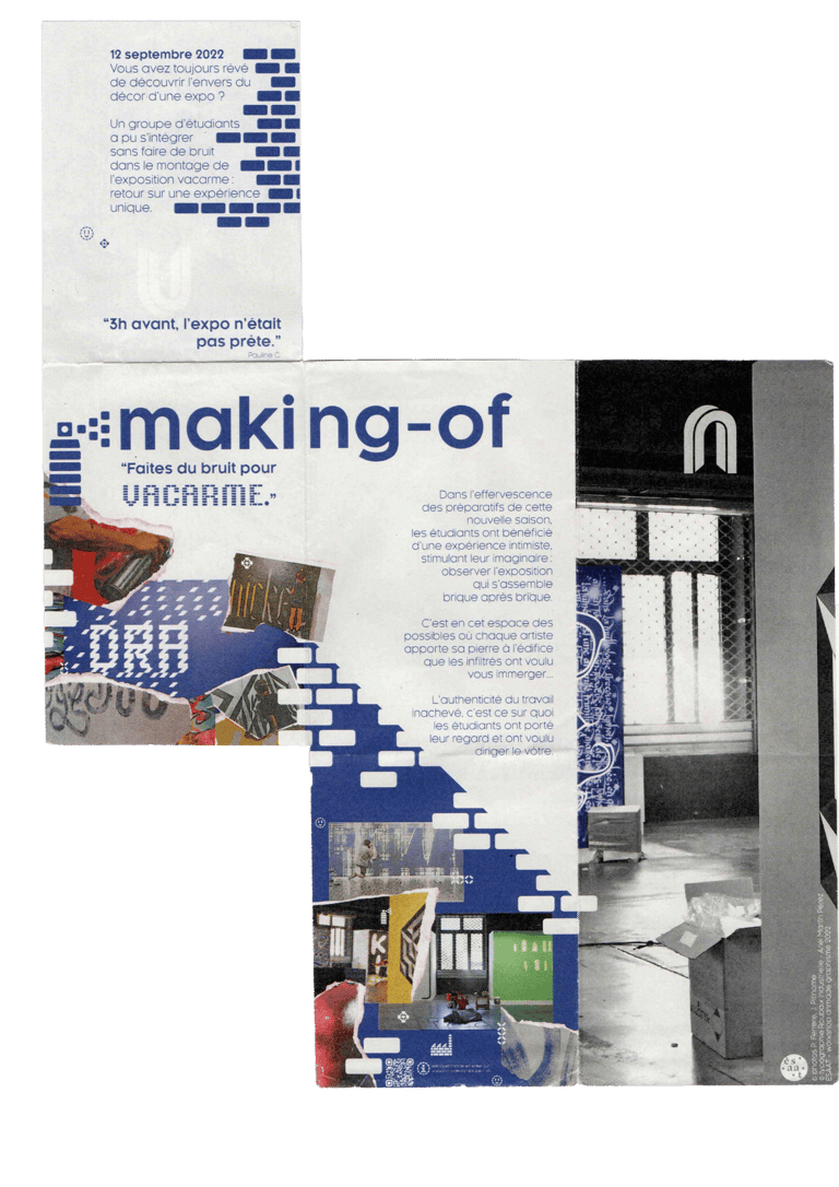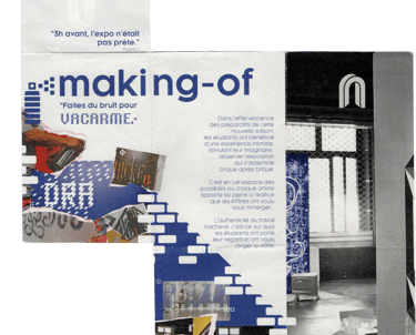 Un projet collectif mené avec les premières et deuxièmes années, pour raconter le processus créatif de l’expo, brique après brique.