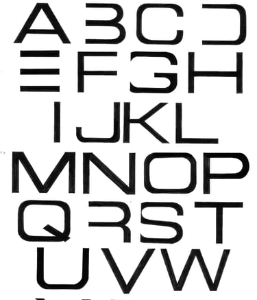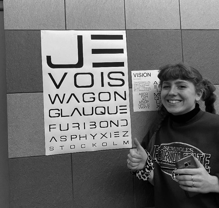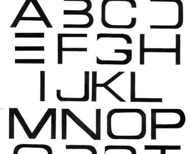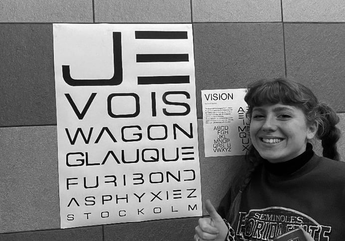 En modifiant un critère précis (graisse, empattement, largeur…), nous avons conçu une nouvelle fonte à la main, testée via un pangramme composé sur affiche.