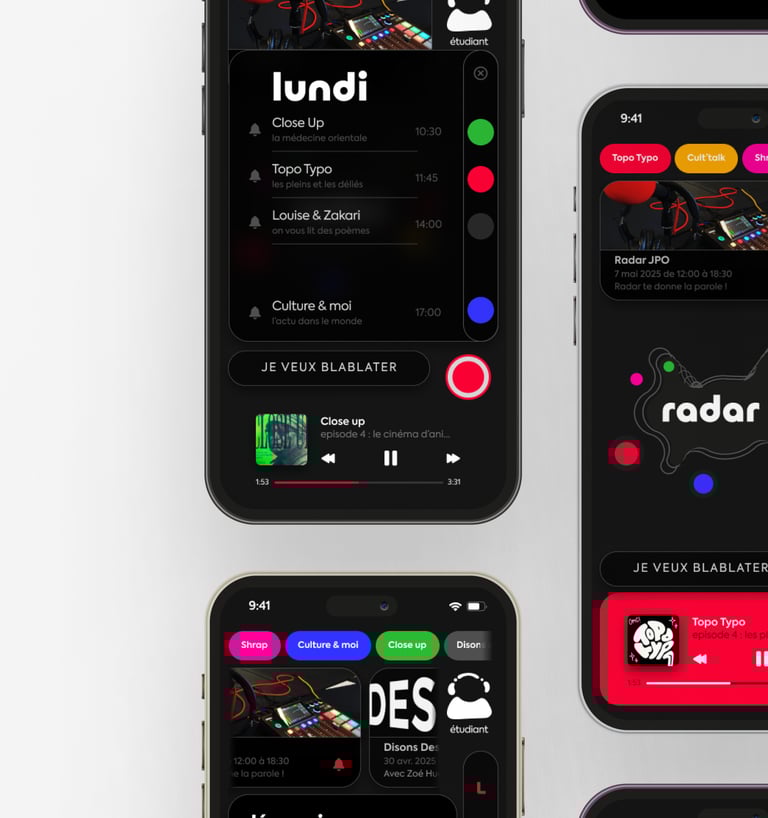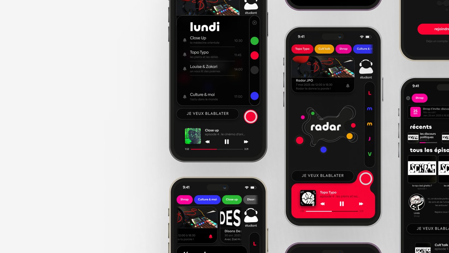The goal was to create an intuitive mobile interface that brings Radar to life — expressing its core values of freedom, creativity, and community.